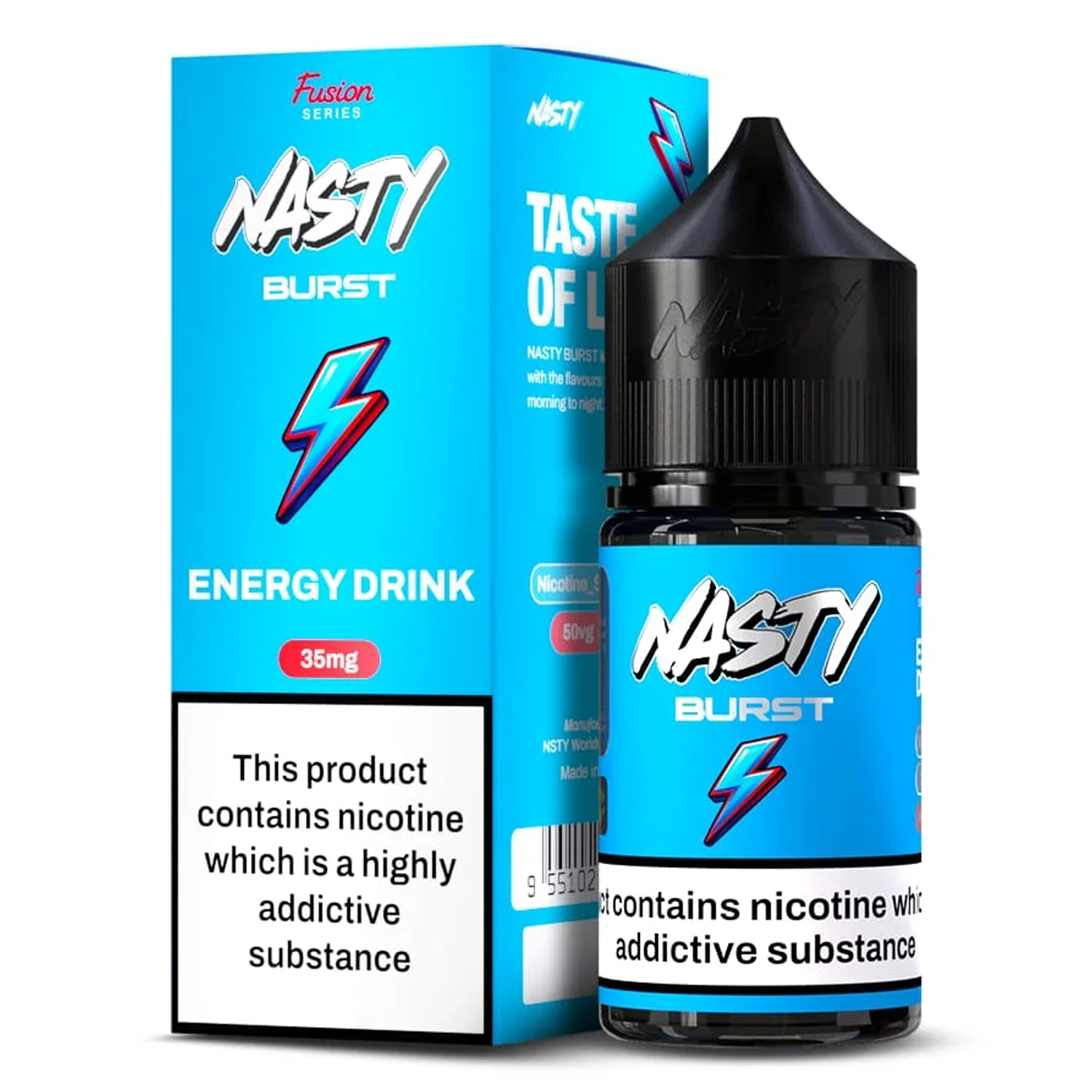Enerji hissini tatlı ve ferah bir aromayla yaşamak isteyenler için Nasty Burst Energy Drink Salt E-Liquid, günün her anına enerji katan bir tercih!
